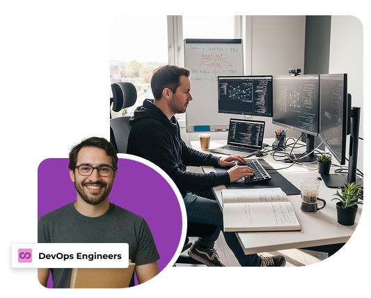 Need more than one DevOps engineer? We assemble complete platform teams, including DevOps Engineers, SREs, Cloud Architects, Security specialists, and QA, aligned with your uptime goals, release cadence, and growth plans.